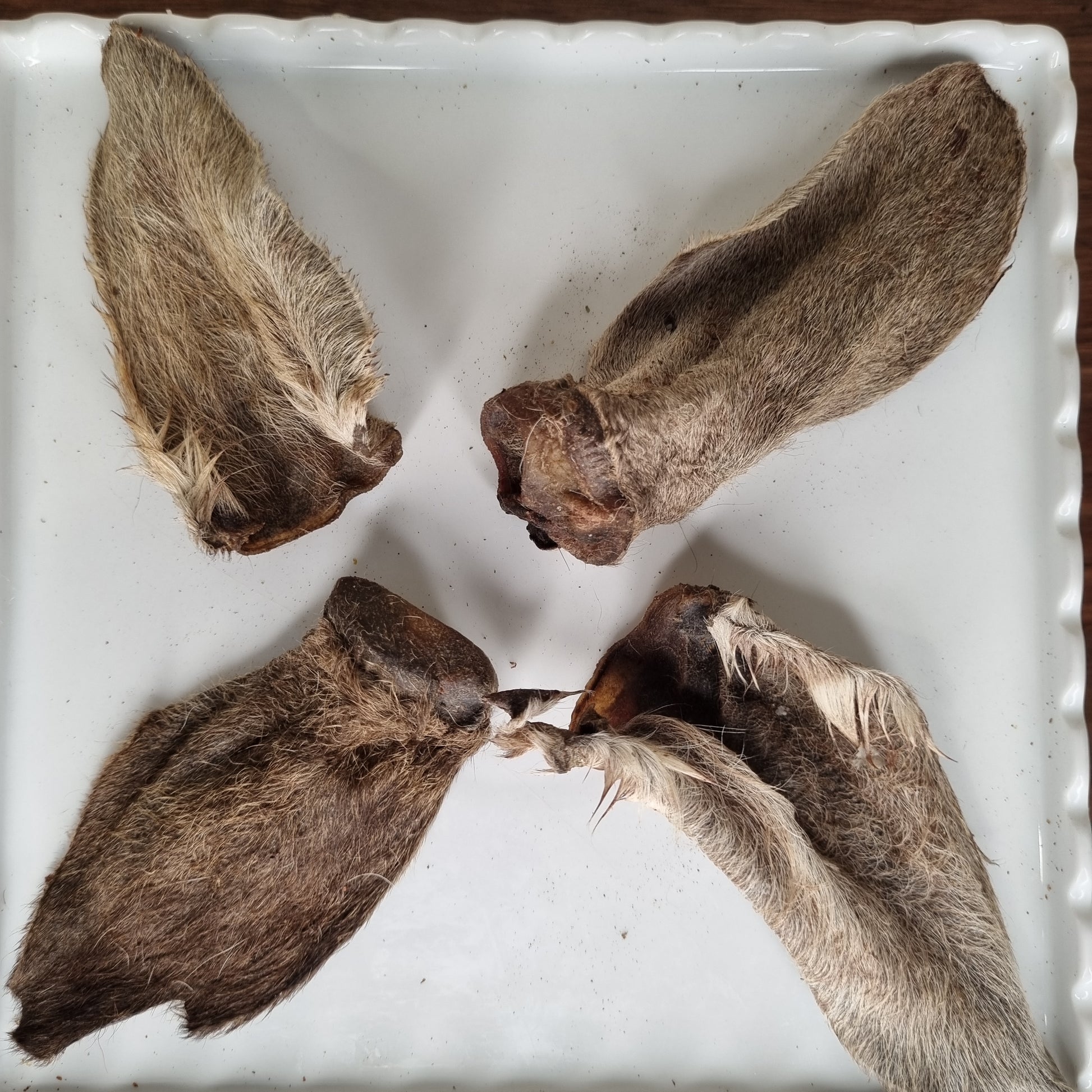 It mainly contains Cartilage and fibre, making it an even more beneficial treat for your furbabies. This is a single ingredient product with no preservatives, additives, colors, added sugar, or anything else. As these ears come with a little fur, it makes for insoluble fibre and together with the ear makes a valuable source of manganese & that is ideal for joints & ligaments. Manganese is said to be lacking in dogs that suffer from cruciate ligament injuries.